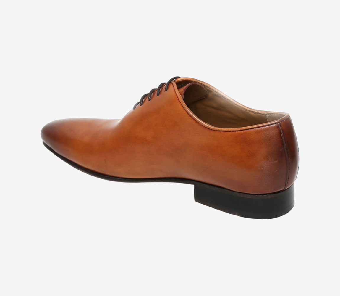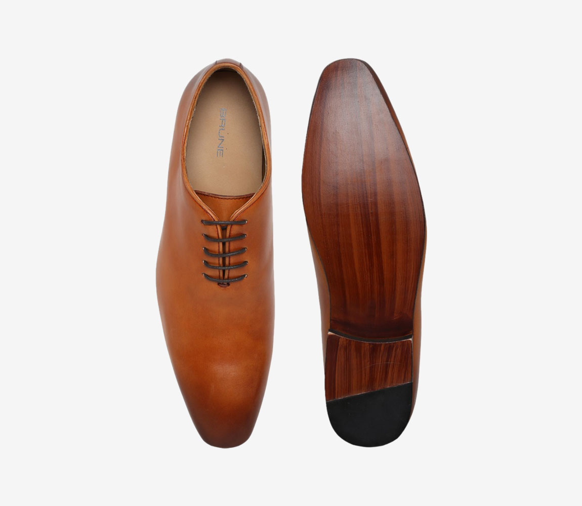 Men Tan Whole Cut Merged Toe Leather Formal Shoe
